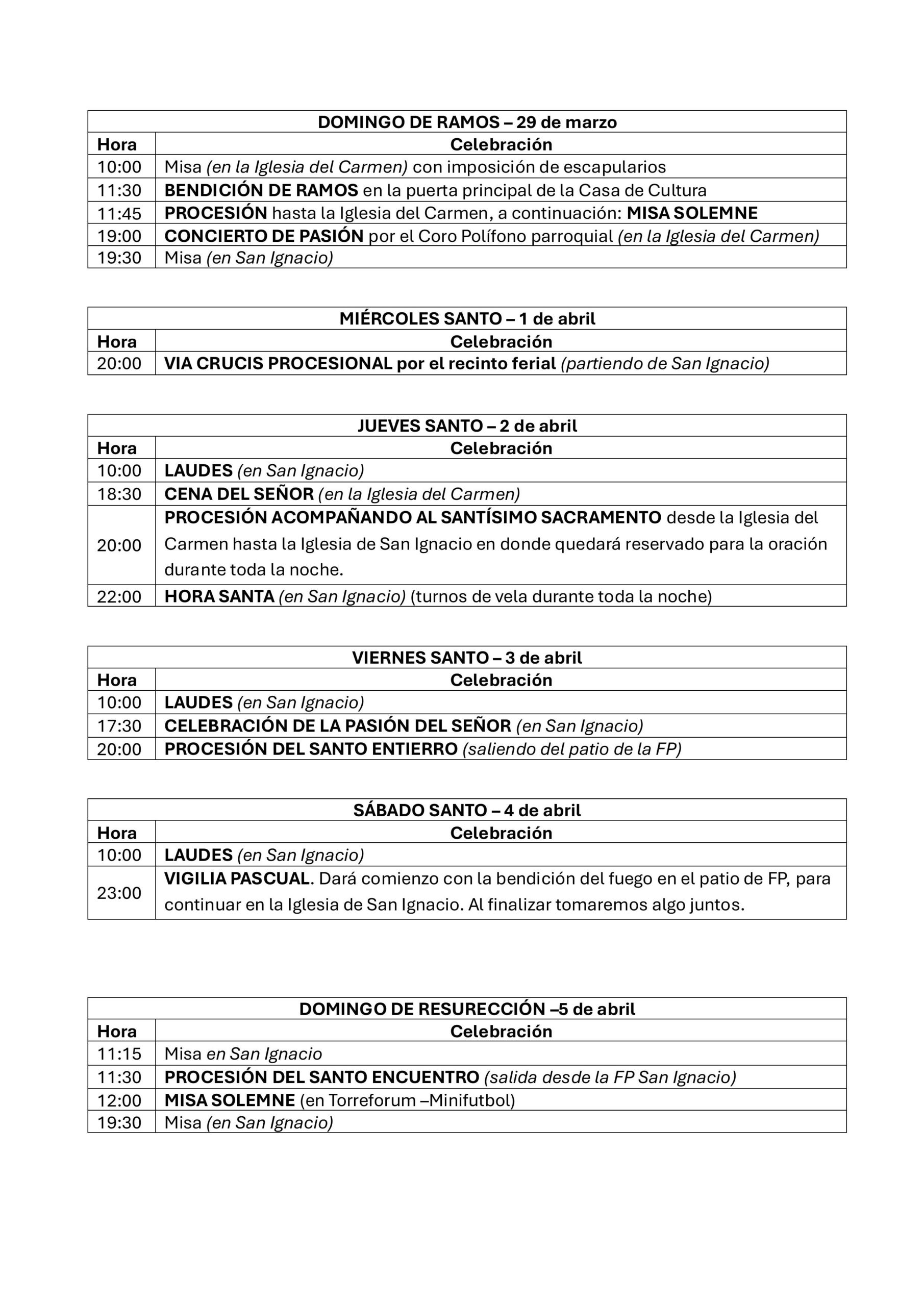 HORARIOS